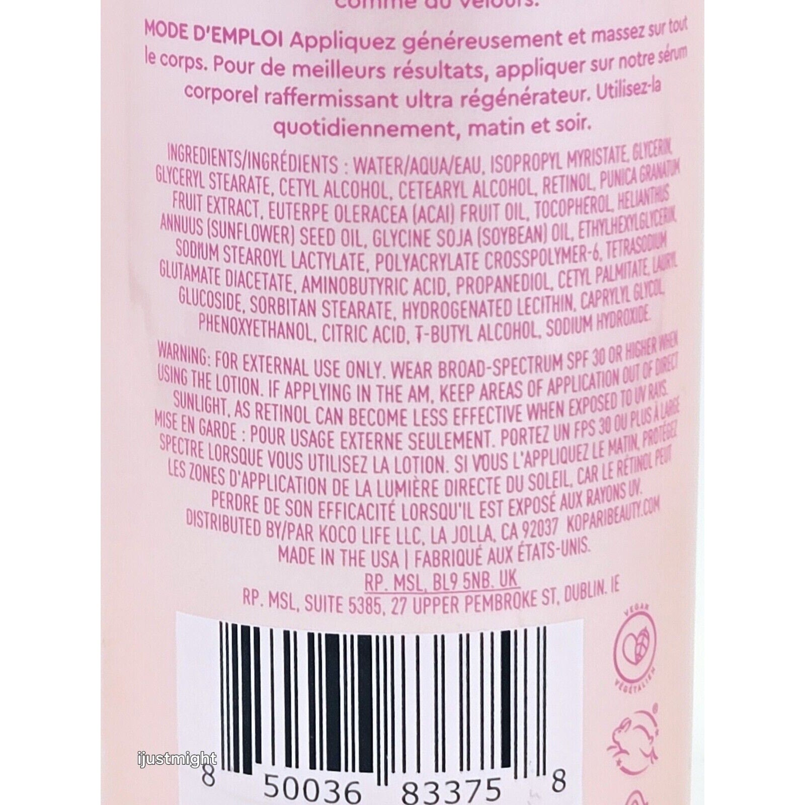 2 Pack KOPARI Ultra Renewal Retinol Body Cream 4.7 oz-