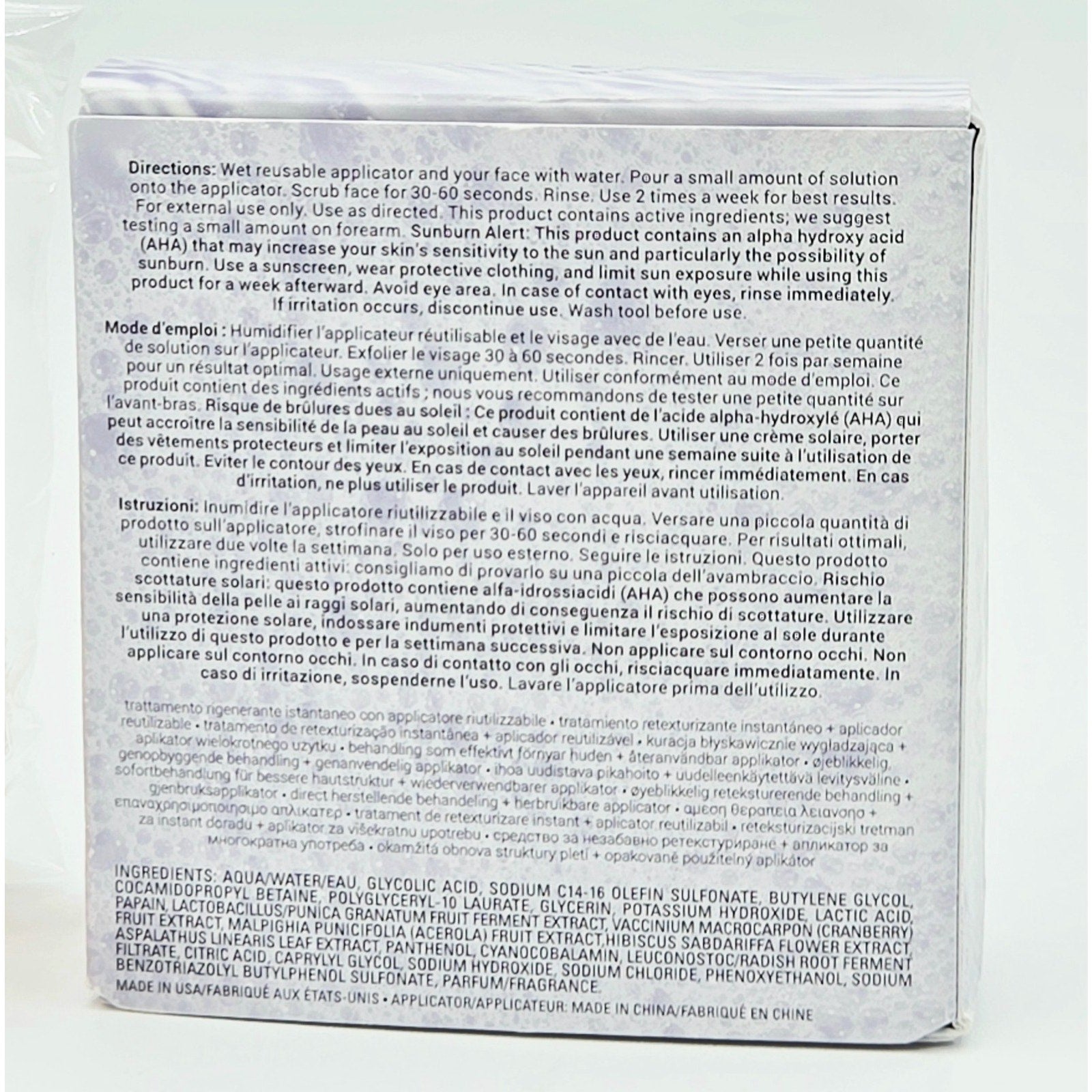 * Purpose: To loosen and lift dead skin cells and dull buildup for a radiant, ultra-soft, and makeup-ready complexion. It is intended to be used with the included reusable applicator